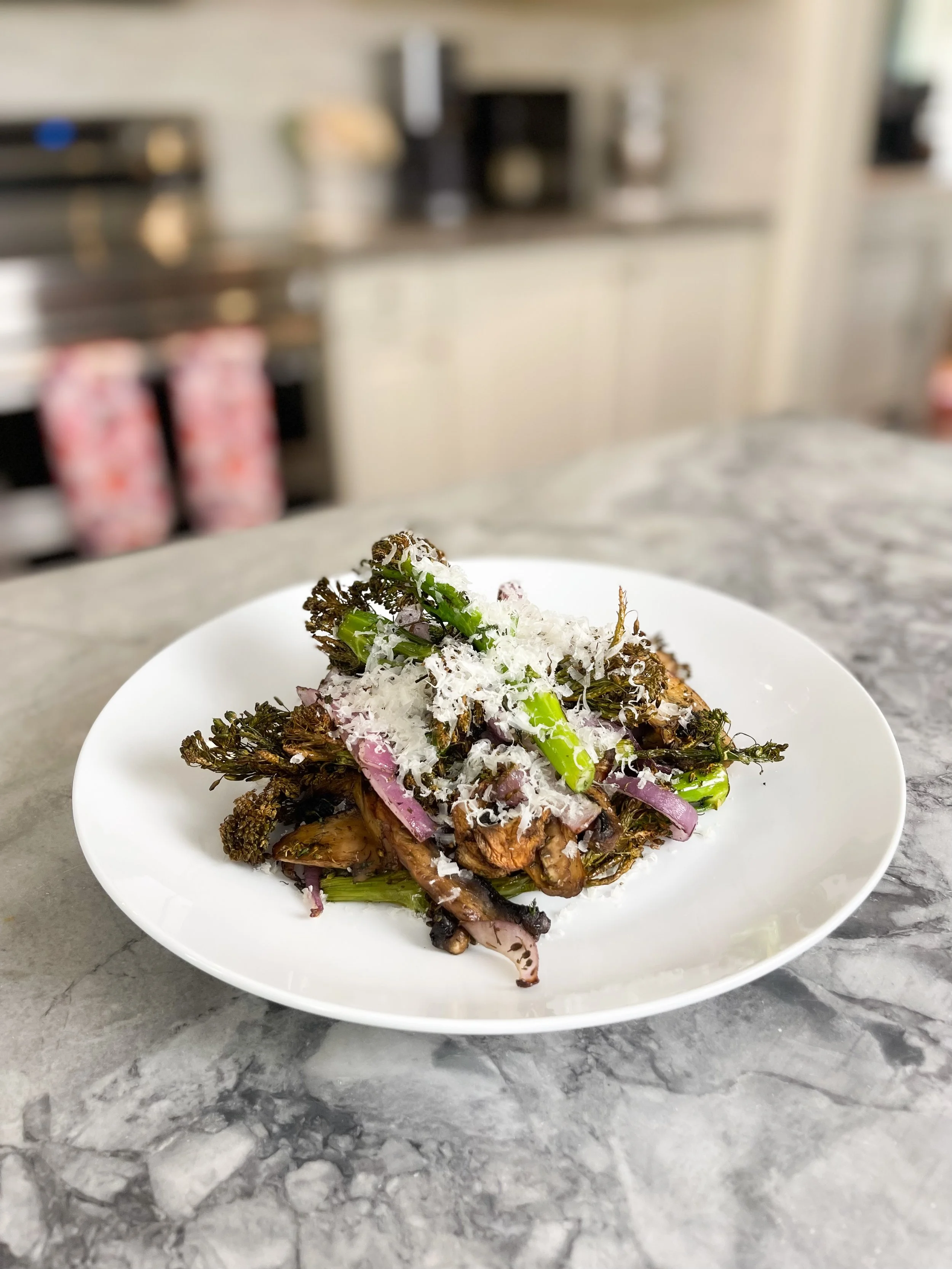 If you’re ready to fall in love with air frying vegetables, this air fryer broccoli parmesan casserole is the perfect place to start. It's bold, herbaceous, and packed with satisfying textures—from tender broccolini to roasted mushrooms and sweet onions.